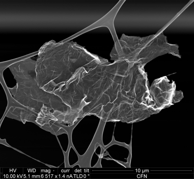Highly Concentrated Graphene Oxide Dispersion in Water Aqueous dispersion, 60 ml Concentration: 5g/L Composition: Carbon (79%), Oxygen (20%) Flake size: 0.5-5 microns Thickness: 1 atomic layer - at least 60%. Color:Brown SEM圖像 |