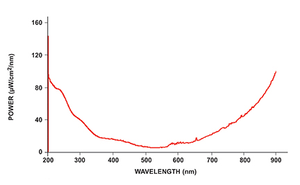創(chuàng)新的氘-鹵鎢組合光源 氘-鹵鎢組合光源結(jié)合了氘和鹵鎢燈的連續(xù)光譜,這個光譜結(jié)合的光源能夠產(chǎn)生穩(wěn)定的、連續(xù)的紫外-可見光輸出,使USB-DT型光源成為一個適合吸光光譜測量的理想工具。 USB-DT光譜輸出
